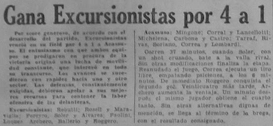 | PUERTO NUEVO 2 47' Redondo 53' Cueto | EXCURSIONISTAS 4 5' S.Gómez 35' Arango 43' y 76' S.Gómez |