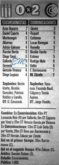 | EXCURSIONISTAS 2 30' S.Gómez 80' Benítez | GENERAL LAMADRID 0 |